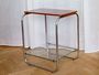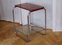 Stylový a praktický stolek s dřevěnou deskou a odkládací spodní skleněnou tabulí ( tl. 6mm ) Pravděpodobně vyrobila Thonet. Stolek se dochoval v původním velmi dobrém stavu. Funkcionalistický styl - Bauhaus z 30-40tých let. Ohýbaná pochromovaná trubková ocel i původní lak dřevěné desky ve vysokém lesku. Ihned pro používání v interieru, rozměry v. 70cm, š. 60cm, h. 52cm
