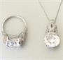 Souprava prstenu a přívěsku s řetízkem z 925 stříbra, oba s velkým broušeným horským křišťálem o průměru 14 mm, oboje značeno 925 a CZ, řetízek 925. Délka přívěsku 2,6 cm, řetízku cca 42,6 cm, vnitřní průměr prstenu cca 19,5 mm, váha dohromady brutto cca 28 g, dobrý stav bez poškození, jen mírné známky stáří a používání.