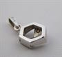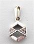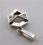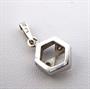 Bílé zlato, přírodní diamanty. Celková hmotnost 1,3 gramů. Přírodní diamanty jednoduchého briliantového brusu. Přívěsek hexagonálního tvaru. Zdobený ve střídavé kombinaci leštěné zkosené hladké plochy a trojúhelníků se vsazenými přírodními diamanty jednoduchého briliantového brusu. Evropa druhá polovina minulého století. Výška 18 mm.