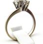 Bílé zlato, ryzost 750 / 1000. Celková hmotnost 3,20 gramů. Prstýnek v horní části elipsovitého tvaru. Na čelní straně dva vsazené diamanty starého briliantového brusu, o hmotnosti cca 0,75 ct, barva G - H, čistota P1 - P2. Český punc : hlava kohouta a číslo 3. Evropa minulé století. Velikost prstenu 56.