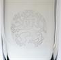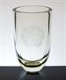 Velmi masivní váza z čirého skla ( tl. stěny 1,5cm ), pravděpodobně státní dar z období první republiky. Váze dominuje oválný reliéf s dobovým znakem ČSR, provedený pískováním a leptáním. Patrně práce z okruhu sklářské umělecké školy Železný Brod ze 30tých let. Výrazný dekorativní solitér, nebo i luxusní prezent. Dobrý stav, rozměr - v. 22cm, prům. 13cm, hmot. 2,6kg
