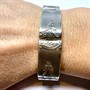 Půvabný, článkový, stříbrný náramek z období první republiky. Šperk byl zhotoven ze stříbra ryzosti 800/1000, o celkové váze 24,20 g. Jednotlivé články zdobeny ručním rytím a jemným gilošováním. Značeno dobovou puncovní, ryzostní a mistrovskou značkou. Délka cca 19 cm, šířka 1,5 cm. Součástí prodeje je původní, dobová etuje. Výborný stav.