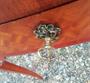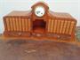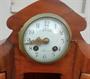 Intarzovaný psací stůl, hodiny pařížskáý stroj. Drobná poškození, původní stav. Originál klíček od hodin a šuplíku. Rozměr 68x42cm, výška 104,5cm