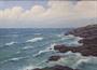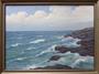 Olej na kartonu 44 cm x 60 cm. Signováno vpravo dole. Mořské vlny narážející na skaliska s racky v pozadí. Vzadu na kartonu přípis: Adrie příboj. Stříbrný patinovaný rámeček. Československo 1925 - 1940. Celkový rozměr s rámem 49,5 cm x 65,5 cm.