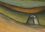 Radim Malát, Haldy ; křída, papír; rámováno, zaskleno, paspartováno;rozměny: 28 x 44 cm; rám: 40 x 61 cm; 60. léta 20 stol.; signováno pod paspartou.