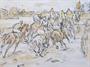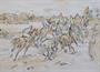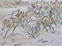 Akvarel a tuš na papíře 36,5 x 49,5 cm - výřez pasparty. Signováno vpravo dole s datací 1961. Patinovaný světlý rám s červenou linkou, šedivou lištou a sklem. Celkový rozměr 70,5 x 59,5 cm.