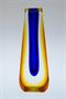 jménem Hantich), kde vázy vznikaly. Vespod je vypískovaný nápis FLORA 1913 - 1983. Tyto celoplošně broušené vázy na jednu květinu, jsou ve sběratelském slangu označované jako "Kapka". Provedení s kobaltově modrým jádrem, které je přejímané ambrovým a čirým sklem, návrh je od sklářského výtvarníka - Pavel HLAVA ( *1924 +2003 ). Dobrý stav, rozměr v. 13,5 x 4,5 x 3cm