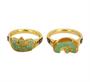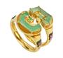 Honosné párové prsteny v renesančním stylu, které byly vyrobeny jako historická kopie snubních prstenů Petra Voka a Kateřiny z Ludanic, nalezených v rodové hrobce Rožmberků ve Vyšším Brodě. Jedná se o speciální typ masivních snubních prstenů, každý ze snoubenců nosil do svatby svůj. Po spojení obou prstenů vytvořily korunky celistvý symbol. Jsou zhotoveny ze zlata ryzosti 750/1000 a osazeny přírodními smaragdy, po stranách drobnými přírodními rubíny a smalty. Celková hmotnost prstenů je 20,71 g. Velikost prstenů je 55 a 58. Přiloženo osvědčení Puncovního úřadu.