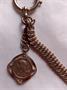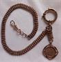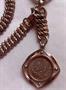 Řetěz k hodinkám je z období kolem roku 1900 ve stylu secese. je zcela funkční a nepoškozený. Materiál je double.Celý je dlouhý 34 cm. Průměr ozdobné medaile je 2,5 cm. na medaili je z jedné strany hlava dívky, z druhé je vavřínový věnec.