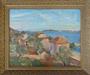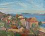 Olej na kartonu 53x67 cm. Signováno vpravo dole s datací 1932 a názvem místa: Korčula. Pohled z ostrova Korčulan na hladinu Jaderského moře a kopcovitou krajinu v pozadí. Originální zlatý patinovaný rám s ornamenty na čelní straně. Československo nebo Dalmácie rok 1932. Celkový rozměr s rámem 60,5x82,5 cm.