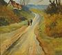 Krajina s poetickou náladou, které dominuje cesta s drobnou figurální stafáží pravděpodobně loučícího se muže a ženy. Dílo příjemné barevnosti, malebné krajinářské zákoutí ve kterém autor mistrně rozehrává náladu světla a barev, navazující na tvorbu holandských mistrů, jemná detailní malba. Neznámý autor tvořící v druhé polovině 19. století. Olej na plátně fixovaný na kartonu nesig. nedat. Obraz v dobrém stavu v původní adjustaci na rámu otluky. Rozměr rámu - 59 x 41cm, rozměr díla - 53 x 35cm