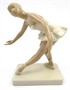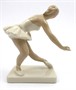 Bílý a barevně ručně malovaný porcelán. Porcelánová figura baletky v pastelové barevnosti zachycená v jedné z tanečních pozic vytvořená známou porcelánkou Royal Dux. Na obdélném nízkém podstavci. Ve výborném stavu. Značeno zespodu: značka výrobce a vtlačená čísla. Československo, Duchcov 1960 - 1978. Výška 17 cm, rozměr podstavce 11 cm x 7 cm.