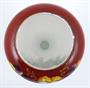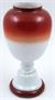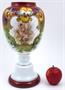 Sklo mléčné ručně malované, s tiskem, zlacené. Velmi vysoká váza z mléčného ručně malovaného skla s barevným tiskem. Centrální motiv hrající si trojice andílků na nebesích orámovaných florálním ornamentem s trojicí velkých pestrobarevných květů macešek a lemováním z úponků s fialovými bobulemi. Horní a dolní hnědý pás a zlacené linky na noze s prstenci. Horní hrana vázy s nepatrným oťukem. Střední Evropa 1890 - 1920. Výška 37 cm, průměr horního okraje 11 cm.