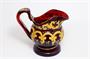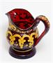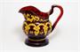 Sytě rubínové sklo - více než 150 let stará mléčenka, nebo omáčník z období Biedermeieru. Rubínové sklo vzniká přidáním zlata do roztavené skloviny, džbánek stojící elegantně na patce je celoplošně dekorovaný malbou vypalovaným smaltem. Pravděpodobně provedly sklárny v severních Čechách v první polovině 19. století. Dobrý stav, rozměr v. 12cm, š. i s ouškem 13cm