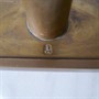 návrh kolem r. 1930 Ateliér pro kovovýrobu (Metallklasse), vedoucí Karl Müller (1888-1972) v dílnách města Halle na Státní a městské uměleckoprůmyslové škole Burg Giebichenstein (Werkstätten der Stadt Halle - Staatlich-städtische Kunstgewerbeschule Burg Giebichenstein), Halle, Německo, značka ateliéru, výška 19 cm, ručně tepaná mosaz, velmi zřídka vídaný značený objekt. O škole: Metallkunst der Moderne. Berlin: Bröhan-Museum, 2001, s. 126-131.