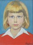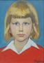 Olej na plátně 33,5 cm x 24 cm. Signováno vpravo dole s datací 1975. Autor: Rudolf Kundera (1911-2005). Portrét plavovlasé dívky v červeném svetru. Stylový umělecký rám s vnitřní bílou profilovanou lištou. Francie, rok 1975. Celkový rozměr s rámem 45,5 cm x 37 cm.