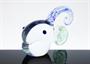 Drobná figurální plastika - skleněný objekt z hutního skla, provedená sklárnou Železnobrodské sklo po roce 1993 s dochovanou původní nálepkou. Exotická ryba v neobvyklém pojetí s dekorem z pestrobarevného skla, vhodná i jako těžítko na pracovní stůl. Dobrý stav, rozměr - d. 14 x 10 x 6cm
