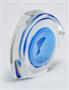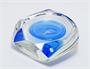 Skleněné těžítko s figurálním motivem - RYBA, zatavená rybka z porcelánové hmoty v akvamarínové sklovině, která je navrstvená čirým sklem broušeným do fazet. Unikátní těžítko, návrh kolem roku 1970, Karel LISIČAN a Vlastimil SVOBODA. Provedení Karlovarské sklo - MOSER, Karlovy Vary. Dobrý stav, rozměr š. 13 x 11 x 4cm