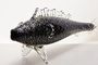Jedinečná skleněná plastika - RYBA z černého hyalitového skla ( velmi náročného na výrobu a nepropouštějící žádné světlo ) se zataveným stříbřitým aventurinem a přejmuté čirou sklovinou. Ryba stojí stabilně na ploutvičkách z čirého skla. Čechy po roce 1900. Dobrý stav bez poškození, rozměr d. 40 x 14 x 8cm