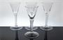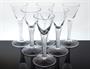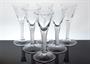 Sada skleniček z čirého hutního skla s nožkou ve které je zatavená jemná vzduchová spirála. Kalíšek je dekorovaný historizující rytinou. Tento nápojový soubor vychází z rokokového benátské skla a byl navržen v roce 1951 sklářským výtvarníkem - Rudolf SCHWEDLER ( *1896 + 1981 ) ve spolupráci se sklářským mistrem J. Stáníkem. Luxusní produkce sklárny Harrachov z druhé poloviny minulého století. Dobrý stav, rozměr - v. 15cm, prům. 7,5 cm. Publikováno v knize „Z Nového Světa do celého světa" autor Jan MERGL a kolektiv na straně 392