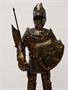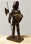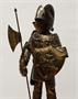 Kovová plastika z patinovaného plechu, středověký rytíř v brnění a plné zbroji s atributy bojovníka. Velmi dekorativní soška pochází z druhé poloviny minulého století, kvalitní uměleckořemeslná práce, výrobcem neznačeno. Dobrý stav, ihned k vystavení v interiéru, rozměr - v. 42cm