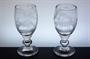 Sklenice ze silného čirého skla na elegantní nožce s olivkou ( tzv. Grogovky ) zušlechtěné celoplošnou rytinou s historickými motivy se symbolikou lovu a štvanice. Hluboce rytý figurální dekor, půvabná sklářská práce z první poloviny minulého století. Dobrý stav, rozměr v. 16cm, prům. 7cm