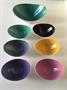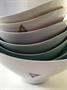 Sada porcelánových misek ve stylu Expo 58. Návrh Jindřich Marek. Provedení porcelánka Royal Dux Duchcov. Značeno vypálenou značkou a nálepkou. Mísa 20 x 15 x 9 cm, misky 13 x 10 x 6 cm. 60. léta 20. stol.