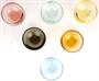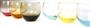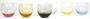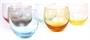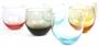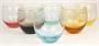 Pestrá paleta odstínů skla typická pro sklárnu MOSER: topas, amber, rosalín, beryl, alexandrit a citrín. Tyto sklenice se označovaly pouze papírovou nálepkou.