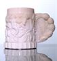 lisovaná a dobrušovaná sklenice s uchem od firmy Curt Schlevogt, na dně je vyryta signatura H. Hoffmann 18.IV.1938, výška 12 cm