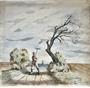 německý malíř a grafik. Studium absolvoval na Kunstgewerbeschule Stettin a Akademie für graphische Künste und Buchgewerbe, později pracoval jako profesor na Karl Marx Universität in Leipzig. Kombinovaná technika na kartonu o velikosti 45 x 47,5 cm, signováno a datováno vlevo dole “G. A. Schulz 9. 43.” Rámováno pod sklem o celkové velikosti 55 x 57 cm.