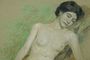 Velký secesní snový akt spící nahé dívky, pastel a křída na kartonu z roku 1919 signováno p.d. PRAIBIŠ. Barevně i obsahem velice příjemné dílo z počátku století v reprezentativním rámu pod sklem. Obraz i rám v dobrém stavu. Rozměr rámu 85 x 65cm, rozměr díla - 60 x 40cm