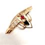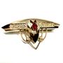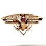 Velmi půvabná brož zhotovená v první polovině 20.století z tzv. double (silně zlacený kov) v ryze secesním stylu. Rozměry 3,7 x 1,8 cm. Výborný stav.