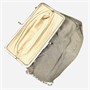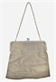Zhotoveno ze stříbřené alpaky (kvalitní stříbrnická a zlatnická slitina), vnitřek ze světle béžové přírodní kozinky; značka "ALPACCA" zevnitř rámu. Hmotnost 240 g, délka kapsy 17,5 cm, šířka 17 cm, délka řetízku 41 cm, šířka vazby 4 mm. Kuličkové zapínání v pořádku, celkově stopy nošení, při rámu lehce narušena drátěná vazba (nemá vliv na bezpečnost nošení), ponecháno s přirozenou patinou.