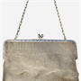 Elegantní dámská kabelka z období secese, tělo z jemných splétaných drátků. Rám zdobený geometrizujícím ornamentem v kontrastním modrém smaltu, který koresponduje s kónickými muglemi syntetických modrých safírů na zapínání, připojen řetízek vazby "anker". Tradičně pojatý kousek, středoevropská či německá práce z první pětiny 20. století.