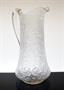 Secesní džbán elegantního tvaru z počátku minulého století, čiré sklo po celé ploše dekorované hlubokou povrchovou strukturou z roztaveného drceného skla. Nápojové hutně tvarované sklo ze šumavské sklárny Klášterský Mlýn LOETZ ( LÖTZ ), kolelce skla s dekorem "ASTGLAS" kolem roku 1899. Dobrý stav, rozměr - v. 30cm, š. i s uchem 18cm