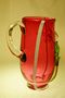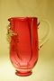 Starý hutní rubínový džbán se zatavenými proužky z opálového skla a dekorovaný květem z čirého a zeleného skla. Džbán je krásně barevný a velmi elegantní. Pravděpodobně provedly sklárny Nový Svět Harrachov po roce 1900, perfekt. stav bez poškození, rozměr - v. 24cm, š. 19cm