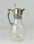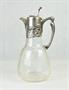 skleněná karafa na víno z období secese, čiré sklo s rytým květinovým motivem, stříbrná montáž s florálním secesním dekorem, Ag btto 688,05g/800/000, německý stříbrník Wilhelm Theodor Binder (Schwäbisch Gmünd), kolem roku 1900, původní německý punc s mistrovskou značkou a pozdější československý státní punc; výška 27 cm