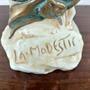 Keramická busta dívky s florálním zdobením, s nápisem La Modestic. Značeno BB a R. Dubelzky. Bernard Bloch, Dubí u Teplic. V secesním stylu. Kolem roku 1900. Výška: 45,5 cm