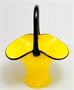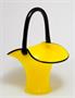 Secesní sklo - stará hutní práce z výrazně barevného Tango skla, které je olemované černým hyalitovým sklem. Vespod je broušená čočka po heftu od sklářské píšťaly. Hutně tvarovaný košík z počátku minulého století je pravděpodobně návrhem rakouského výtvarníka a sochaře - Michael POWOLNY (*1871 +1954). Provedla šumavská sklárna LÖETZ. Dobrý stav, rozměr - v. 18cm, prům. 13,5cm