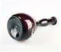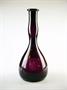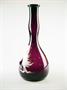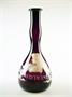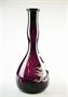 secesní ručně foukaná lahvička z ametystového skla na vlasovou kosmetiku Vegederma ve stylu Mary Gregory - malba bílým vypalovaným smaltem, vyrobeno v USA, kolem r 1910; výška 20 cm, průměr 9 cm