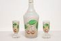 Stylová secesní likérová souprava na jemný likér - karafa a dva frťánky. Čiré ručně malované sklo transparentním emailem s motivem třešniček a povrchovým rastrováním z tavené skelné drtě, která imituje ledovou námrazu. Počátek minulého století, dobrý stav stav. Rozměr - karafka i se zátkou - v. 24cm, prům. 7cm, frťánek - v. 7,5cm, prům. 3,5cm