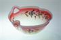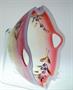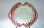 Překrásná organicky tvarovaná miska z mléčného opálového skla s rosalínovým lemováním a zajímavě provedenou florální malbou uvnitř misky s ornamentem - "Pomněnky" vypalovaným smaltem. Spodní část má jemný zelenkavý dekor a pěkná jsou i drobná ouška. Velmi půvabná hutní sklářská práce z počátku minulého století. Vespod je broušená čočka po heftu od sklářské píšťaly. Dobrý stav, rozměr - prům. 21cm, v. 10cm