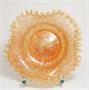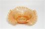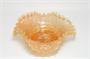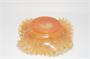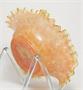 Parádní skleněná miska - hutní sklo z počátku minulého století, jádro z rosalinového (opál) skla je přejímané citrínovou sklovinou se zataveným pestrobarevným a stříbřitým dekorem (slída). Do mnoha jemných vlnek lemovaný okraj, vespod je heft od sklářské píšťaly. Krásná hutní práce po roce 1900, pravděpodobně ze severních Čech. Dobrý stav, rozměr prům. 21cm, v. 7cm