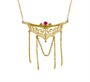 Náhrdelník ze silně zlaceného tombaku zdobený červeným kamenem. Délka náhrdelníku je 64 cm. Rozměry ověsu činí 4,0 x 2,0 cm (visící řetízky jsou dlouhé 3,2 cm). Celková hmotnost 5,92 g.
