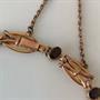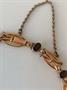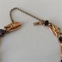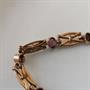 Půvabný náramek osazený fialovými broušenými kameny, zhotovený ze silně zlaceného double, jazýčkový uzávěr, pojistný řetízek. Délka 18 cm, šířka 0,8 cm.