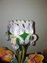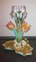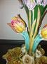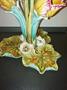 Secesní nastolec s vázou. Majolika. Bez poškození. Rozměry podstavec 36x36cm, výška 44cm.