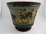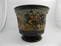 Secesní masivní keramický květináč s bojovníky, majolika, reliéf, malba, Wilhelm Schiller, Čechy, kolem 1900.