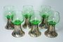 102067Secesní sada sklenic ze zeleného skla v alpakové montáži - ŘÍMAN