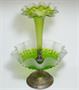 Luxusní dvoudílný nástolec - secesní sklo v kovové montáži. Velmi dekorativní sklářská práce z období Belle Époque kolem roku 1900 je zajímavá množstvím drobných hutních vpichů a dvoubarevným provedením. Nástolec na aranžování květin je pravděpodobně dílem sklárny Wilhelm KRALIK Lenora. Dobrý stav, rozměr - v. 37cm, prům. 25cm