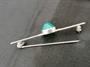 Půvabná secesní brož, zhotovena ze stříbra ryzosti 830/1000, celková hmotnost 3,9 g, osazená zeleným kamenem, vybroušeným do tvaru vysoké mugle, šířka brože 6 cm.